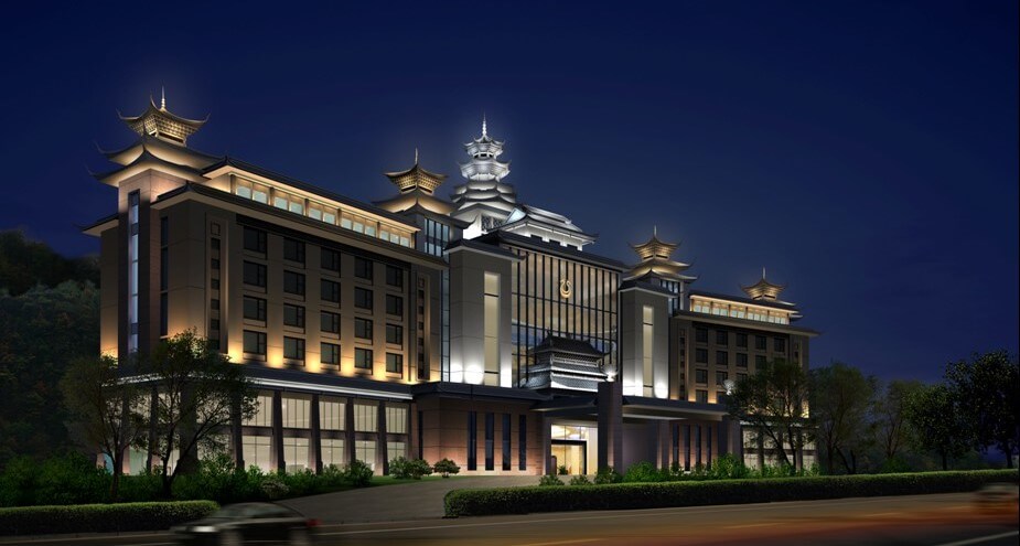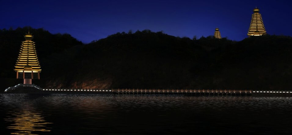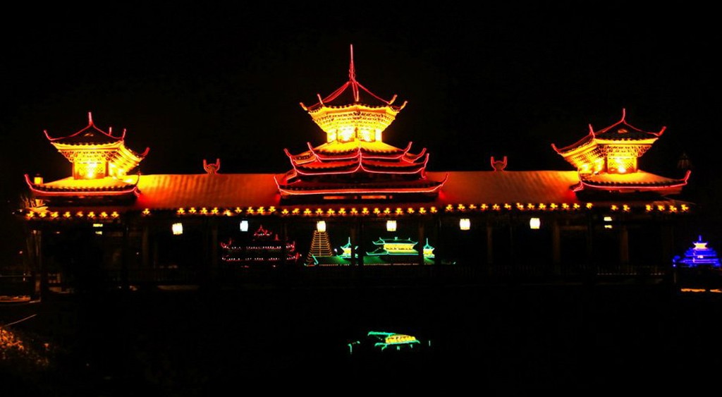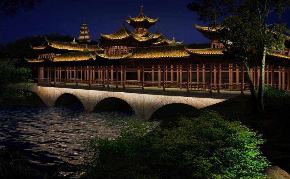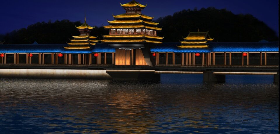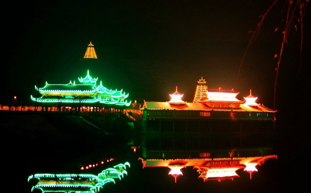 此項(xiàng)目采用統(tǒng)一的并且大面積的暖色調(diào),鋪灑在具有名族特色的古建筑上,展現(xiàn)出一片晶壁輝煌的景象,與湖邊的倒影交相輝映,令人流連忘返。