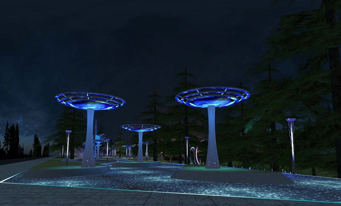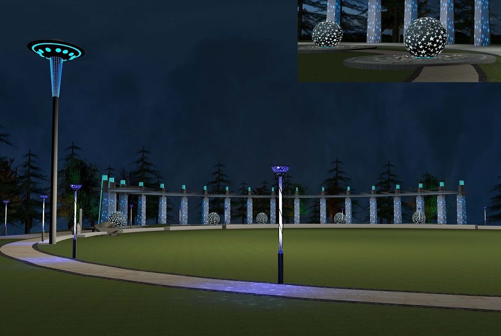該項(xiàng)目主色調(diào)為藍(lán)色,彰顯了天文科普文化園的科技元素,同時(shí)添加人與燈光的互動(dòng),讓天文科普更容易走進(jìn)市民的生活。