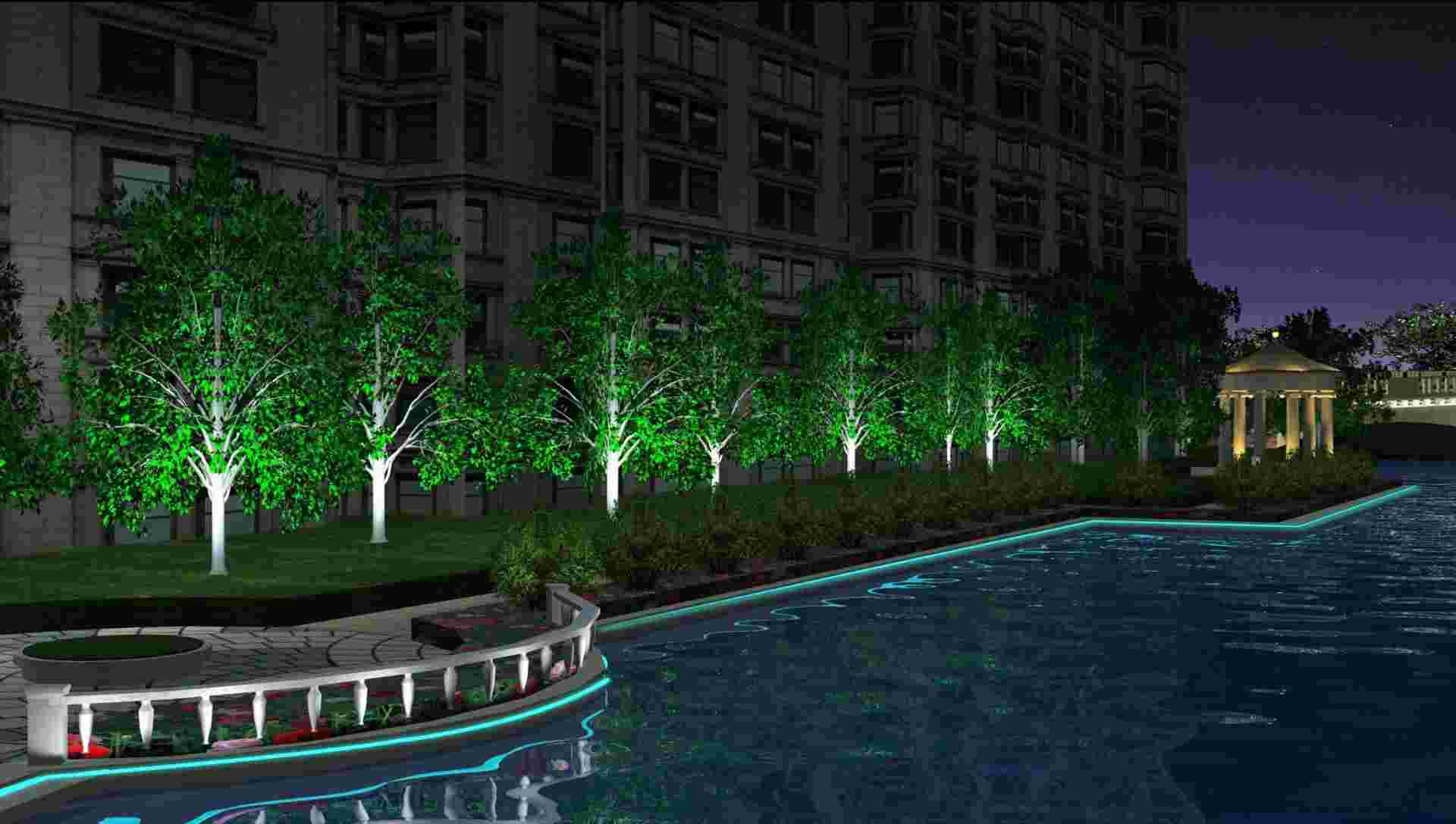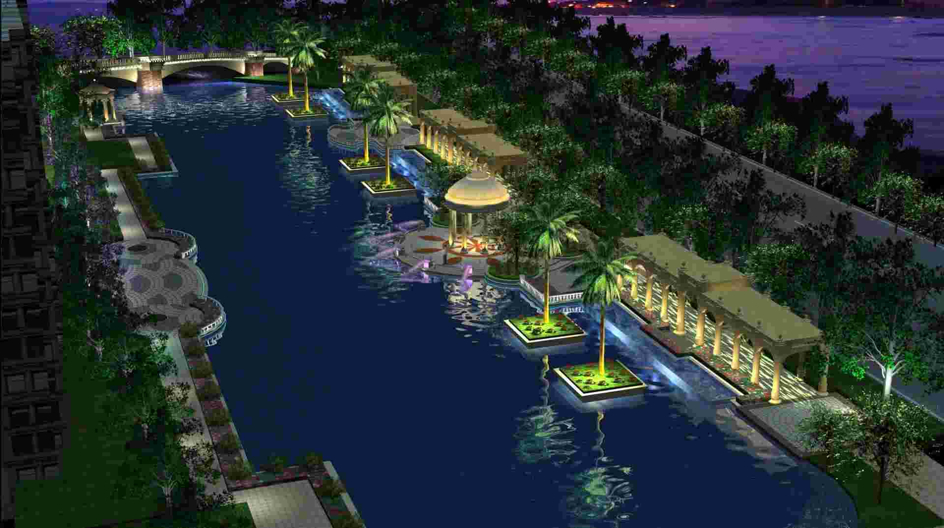 恒大海上威尼斯水城圍繞水為主題,橋梁,噴泉,樹木,全息投影燈等,打造水城不一樣的夜景。